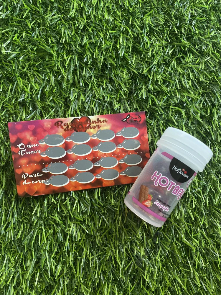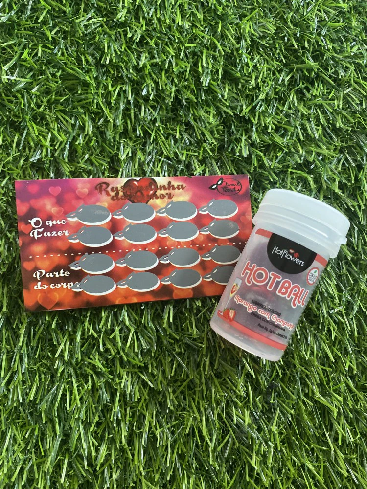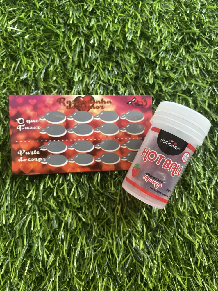 •Kit Hot Ball com Raspadinha do Amor. •Valor: 7,90. •Sabores:Chocolate, Morango, Morango com Chapanhe e Sençação. ❗️Observação: •Lubrificante Íntimo; •Contém Óleo Vegetal; •Cápsula Gelatiniza de Teor Alimentício; •Vitamina E; •Não Altera O PH;