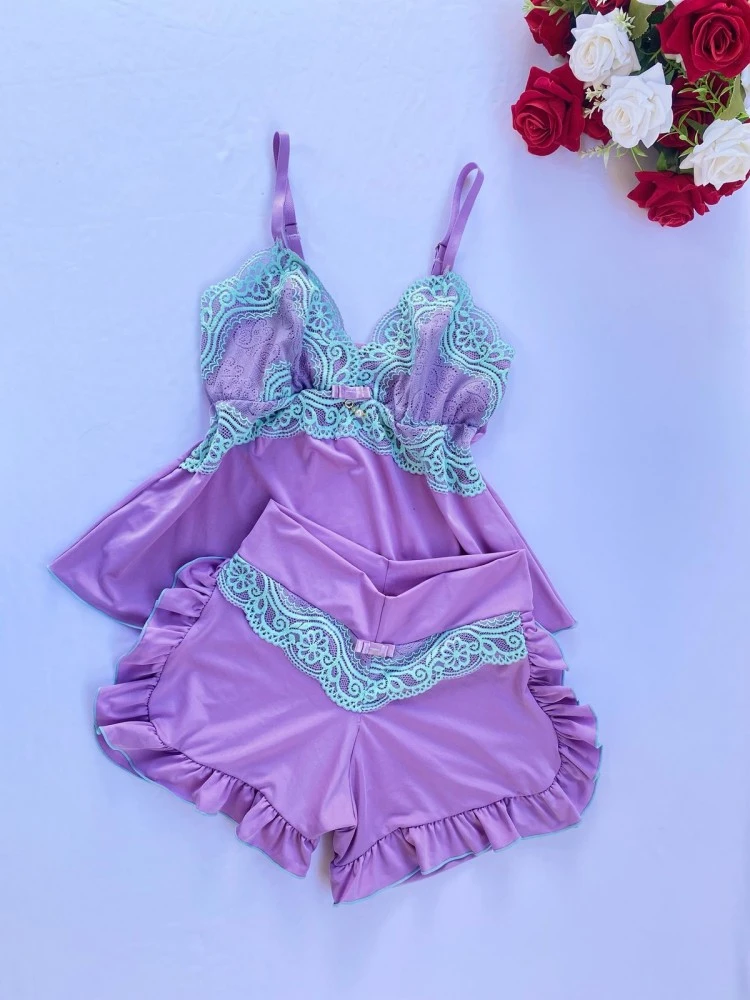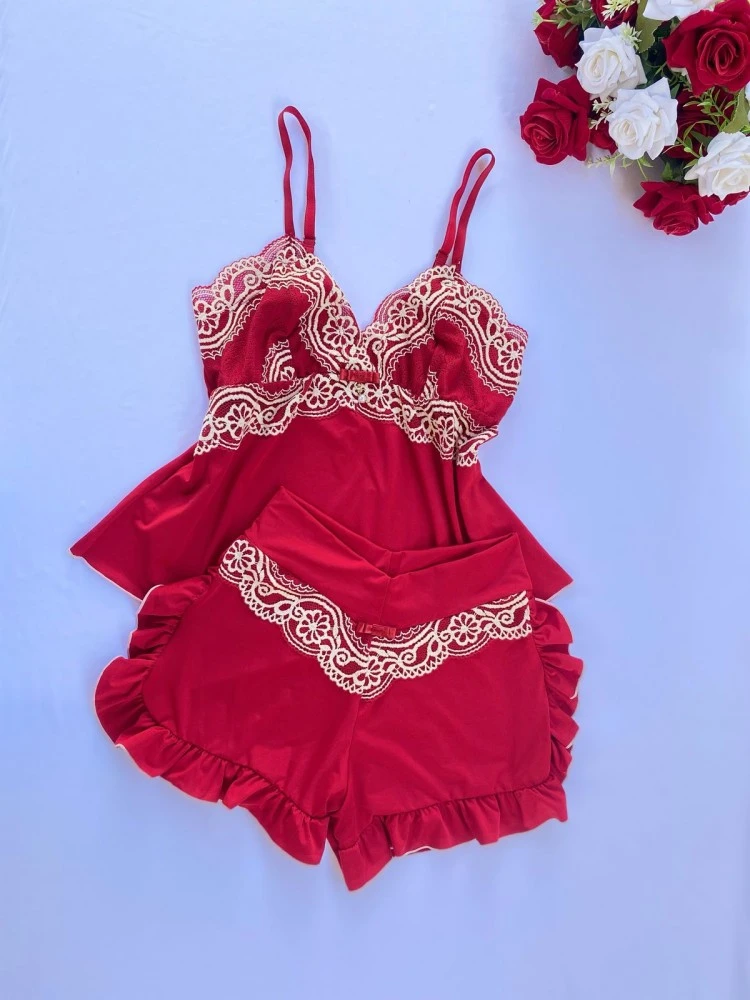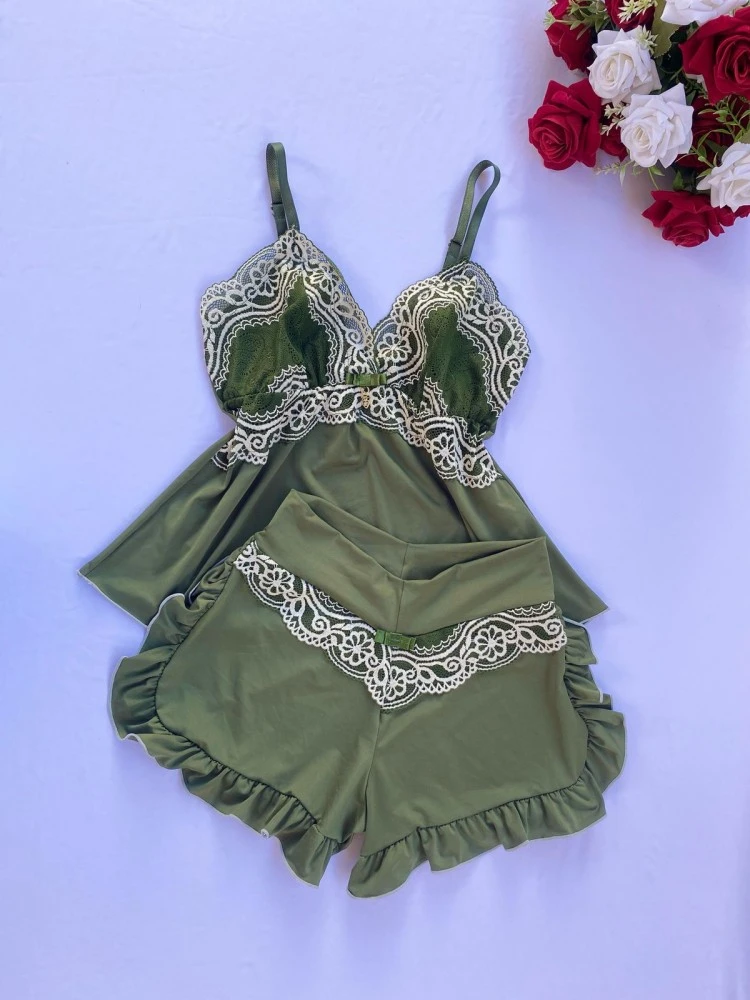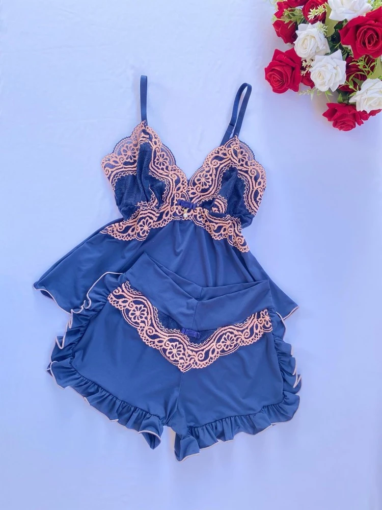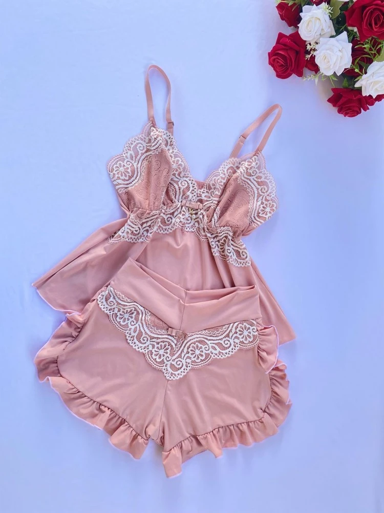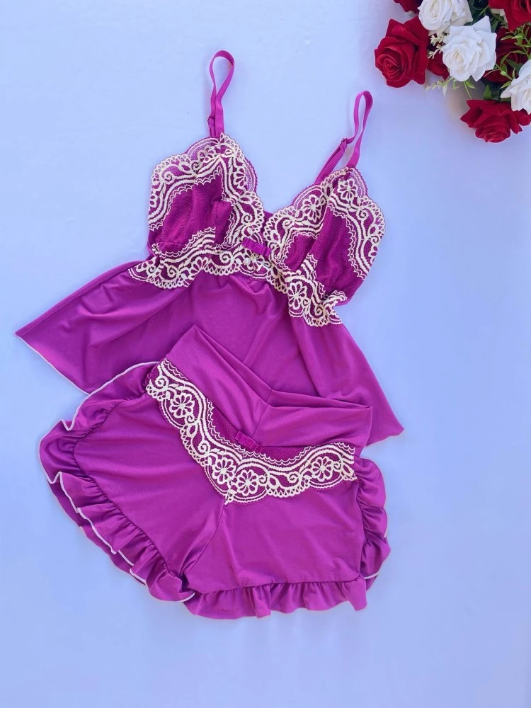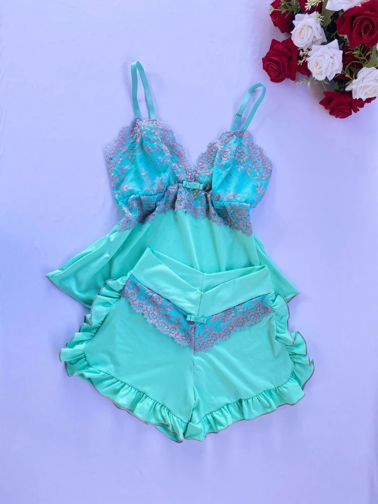 ❗️OBSERVAÇÃO: •Tecido Mari Lua ; •Detalhe de Laço e pingente ; •Renda Bicolor .