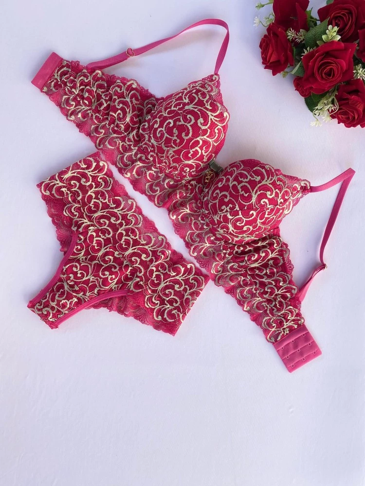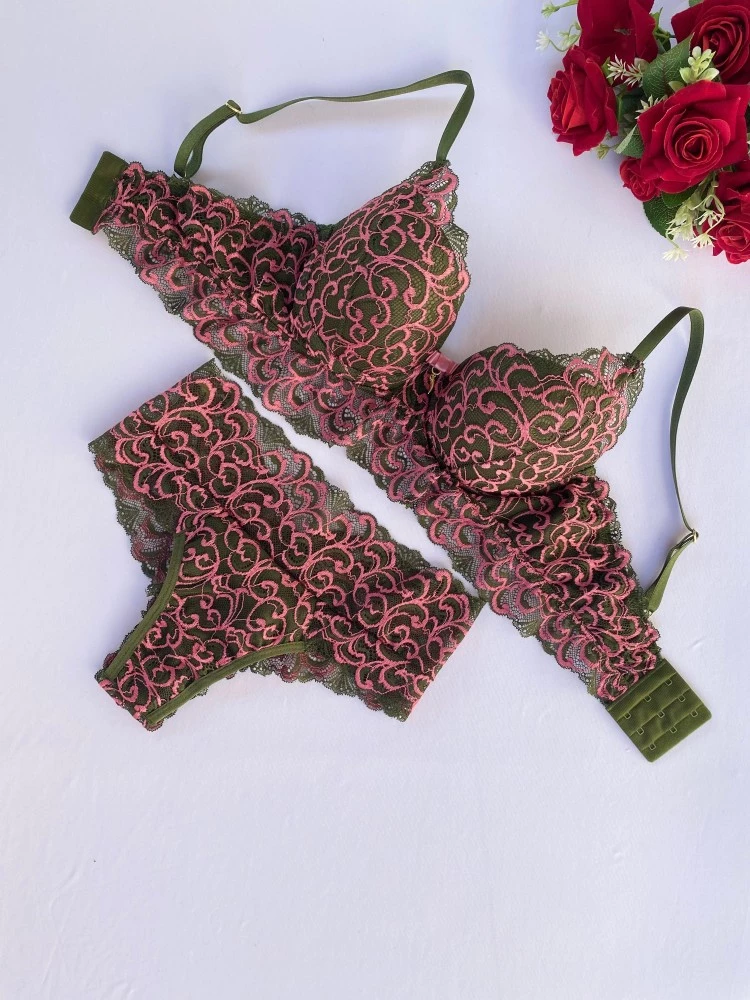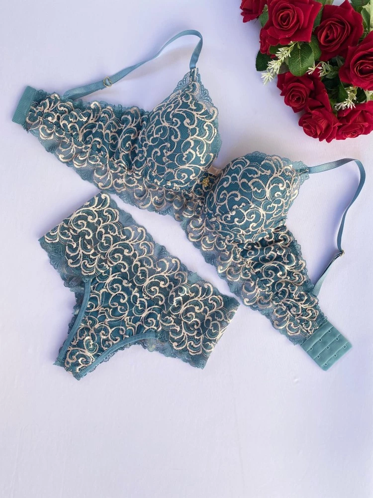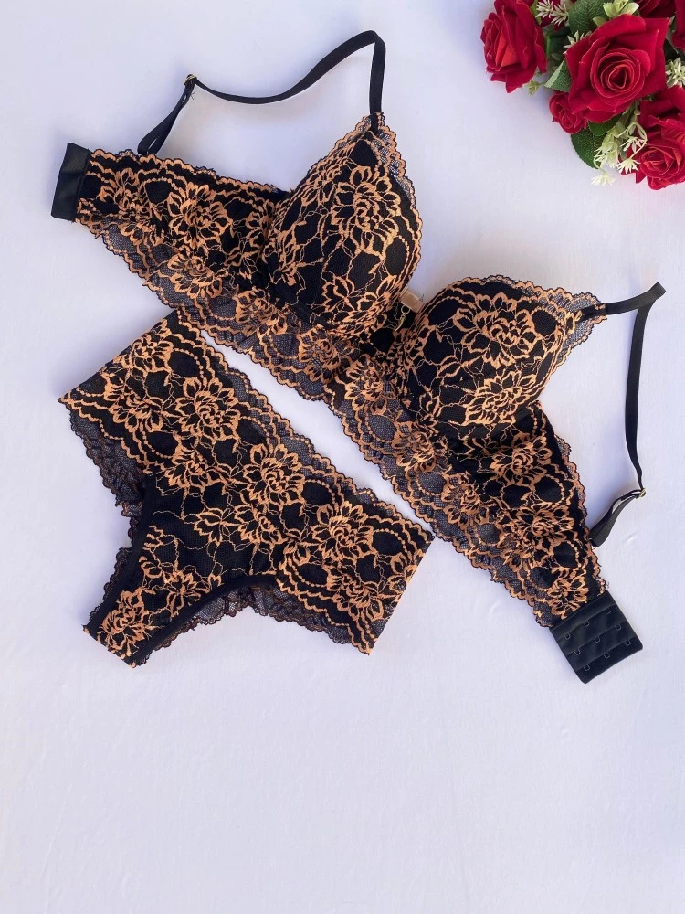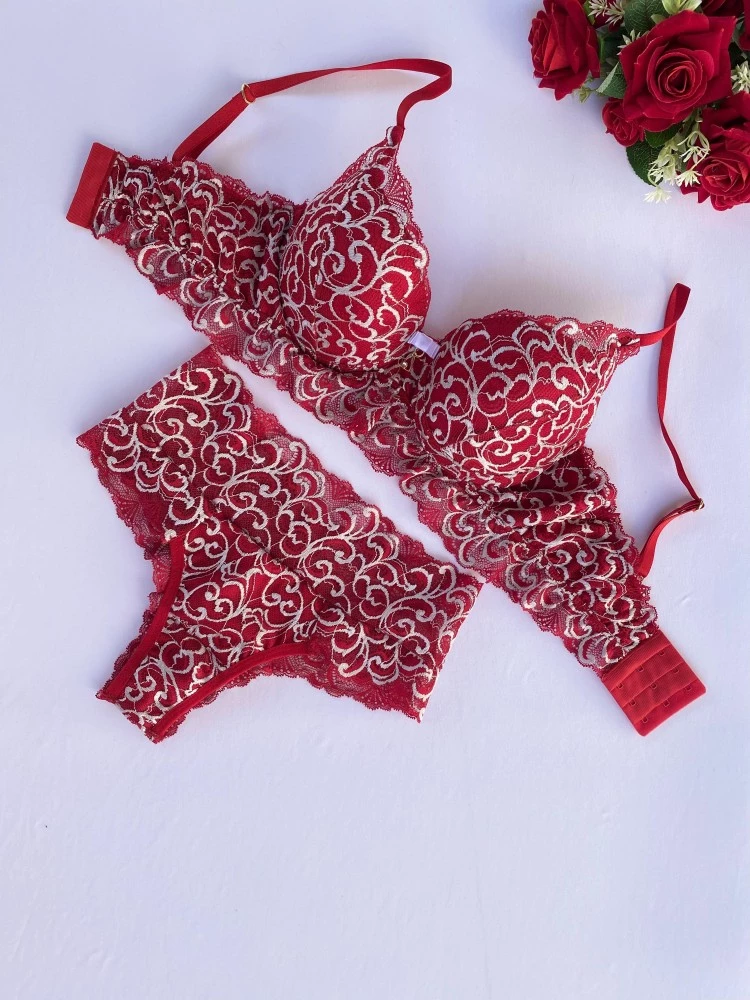 •Conjunto Jackelaine. •Valor: 38,00. •P/M/G/GG. ❗️Observação: •Alça com Regulagem; •Fio de Renda; •Forro 100% Algodão; •Fecho triplo ; •Todo produzido na renda com detalhe de babado em sua formação ; •Detalhe de pingente .